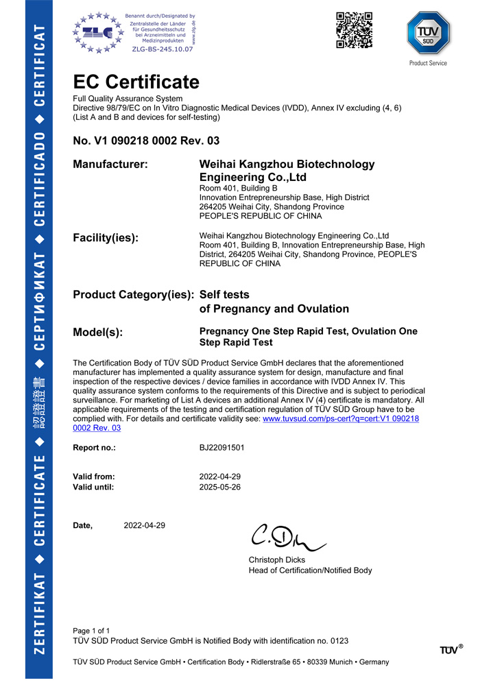早孕和排卵產品的 CE 證書